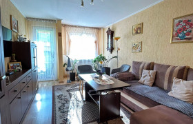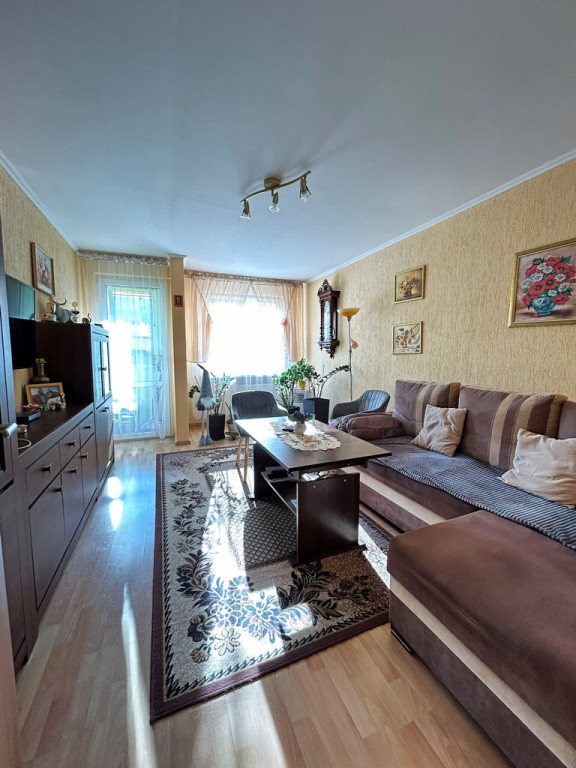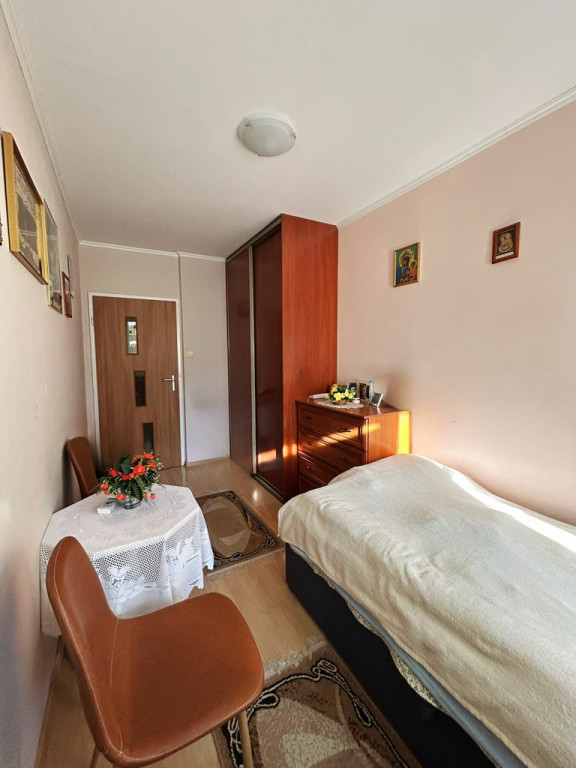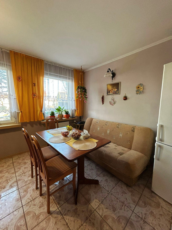 Mieszkanie pierwotnie posiadało trzy pokoje, jednak zostało przebudowane w bardzo funkcjonalny sposób. Jeden z pokoi został połączony z kuchnią, dzięki czemu powstała przestronna jadalnia z kuchnią oraz duża, komfortowa strefa dzienna, idealna do codziennego życia.