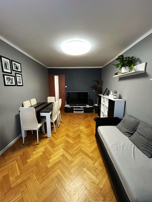 1. Salon z wyjściem na balkon. W salonie położony parkiet, wymagający odświeżenia.
