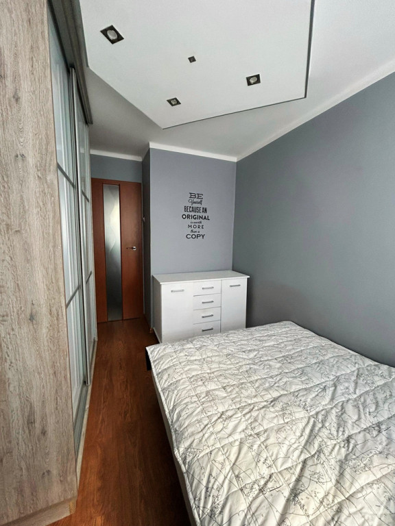 2. Sypialnia z dużą zabudowaną szafą.