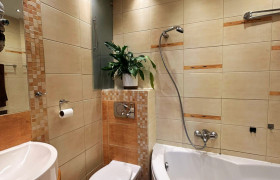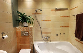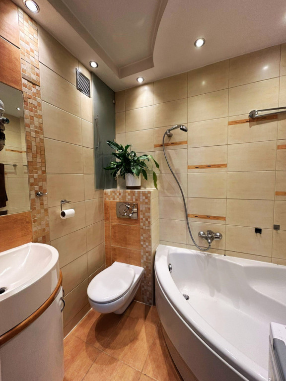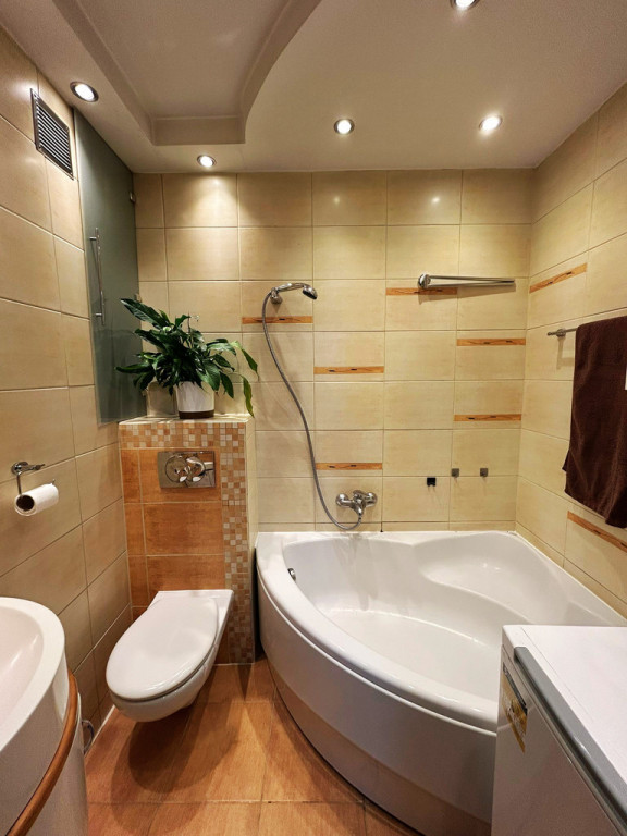 4. Łazienka z WC wyposażona w narożną wannę.