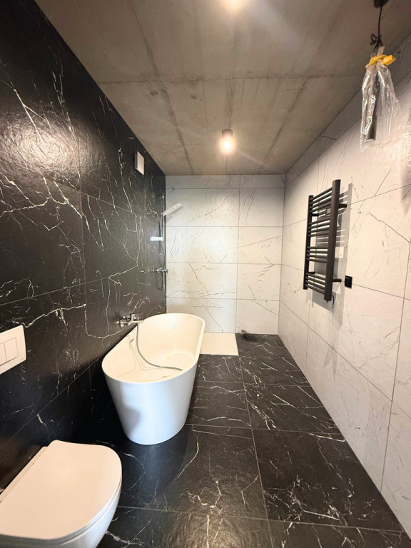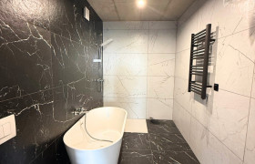 • duża łazienka wyposażona zarówno w wannę, jak i prysznic