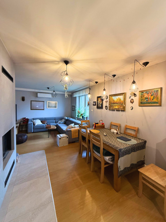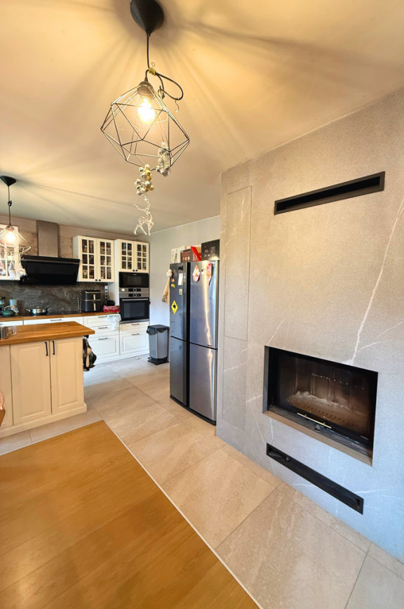Dom ogrzewany jest piecem na pellet, co stanowi ekonomiczne i ekologiczne rozwiązanie.