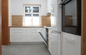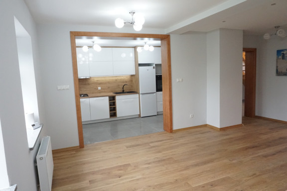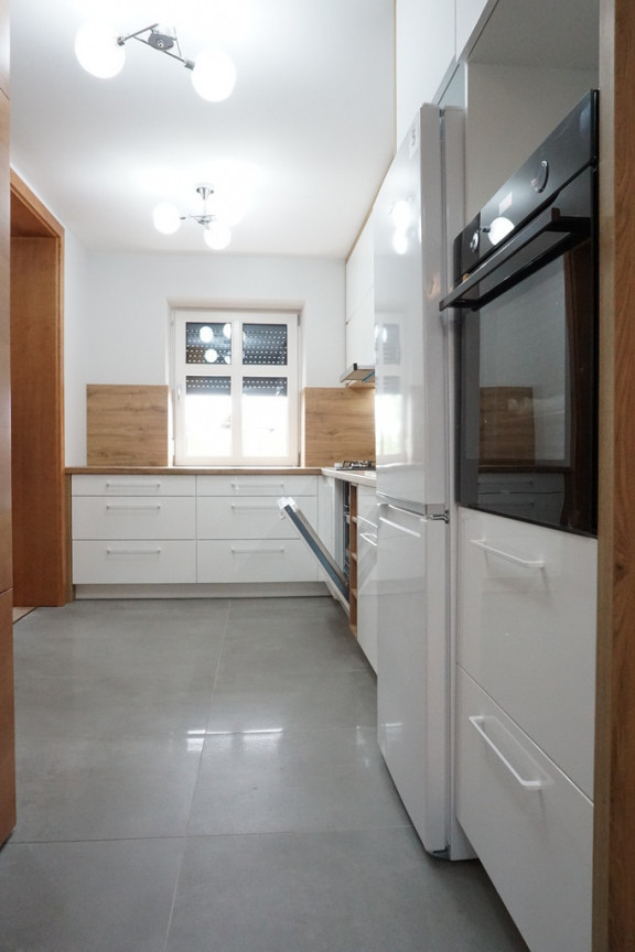 - kuchnia – w pełni zaaranżowana – z funkcjonalnymi meblami w zabudowie i nowym markowym sprzętem AGD (lodówka, płyta gazowa, piekarnik, zmywarka, okap),