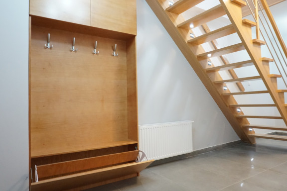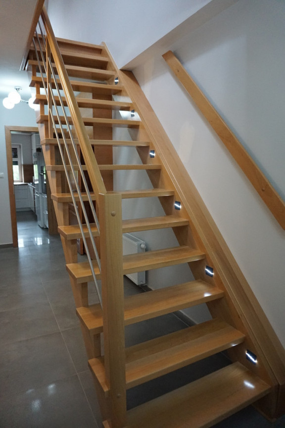 • stolarka drzwiowa wewnętrzna, elementy dekoracyjne oraz schody - drewniane (buk),