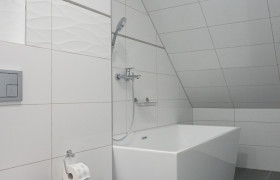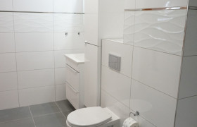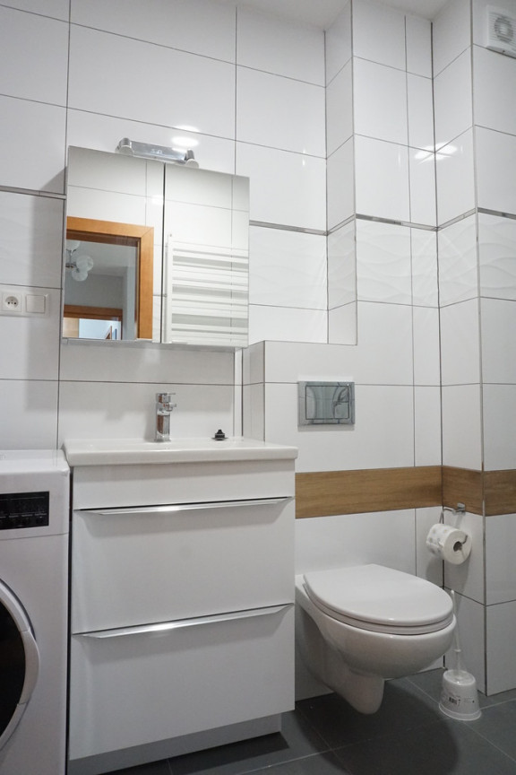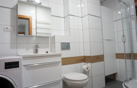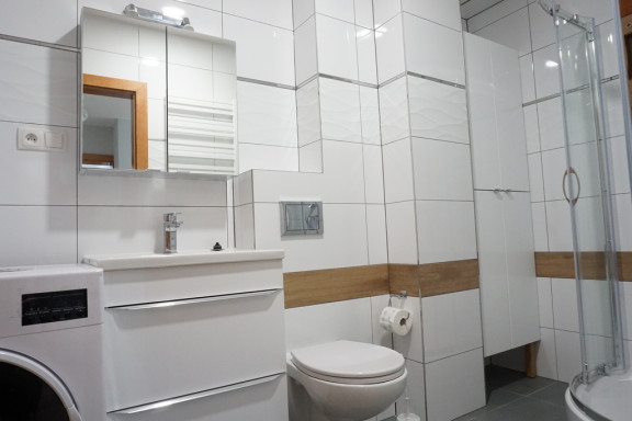 - łazienka z wc i prysznicem – na wyposażeniu pralko-suszarka,